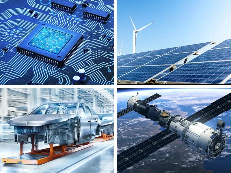 ● Déantúsaíocht Feithicleach: Leictreonaic feithicleach, ábhair doirteal teasa